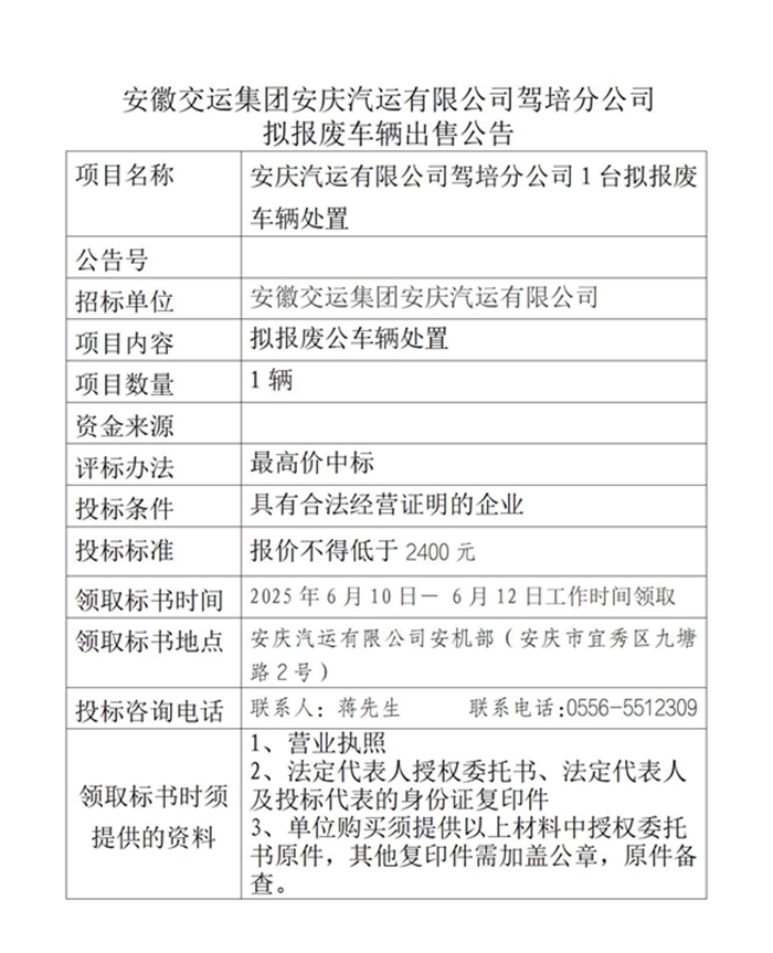 駕培分公司擬報廢車(chē)輛出售公告