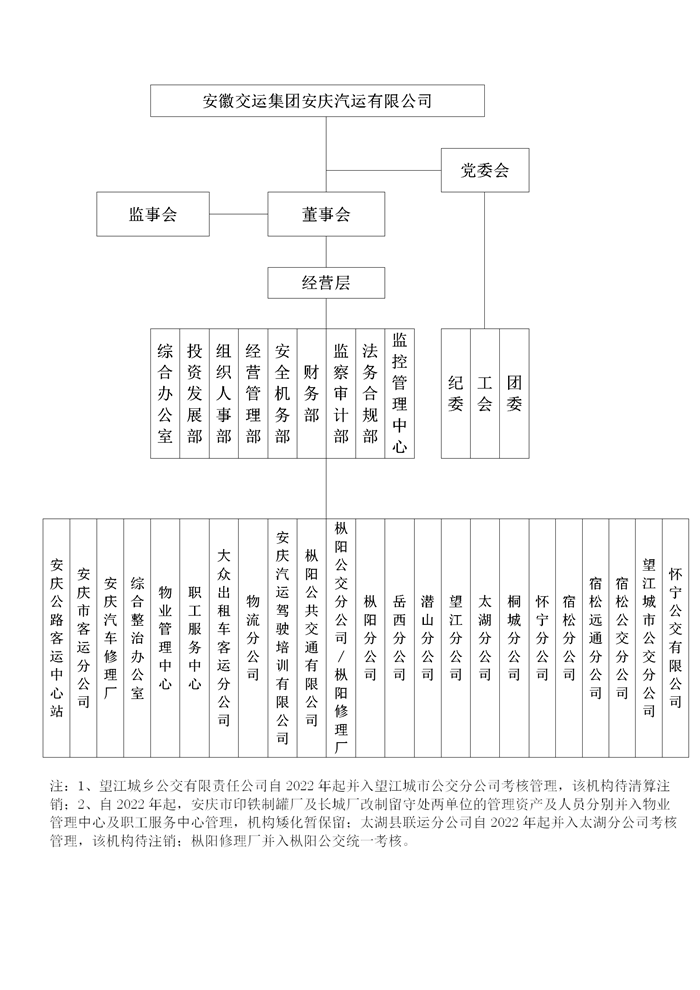 安徽交運集團安慶汽運有限公司組織架構